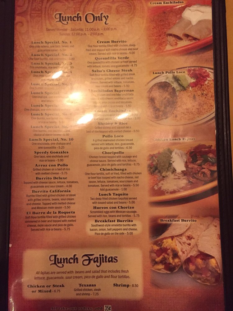 Salsa's Mexican Cafe Menu (Update 2025)